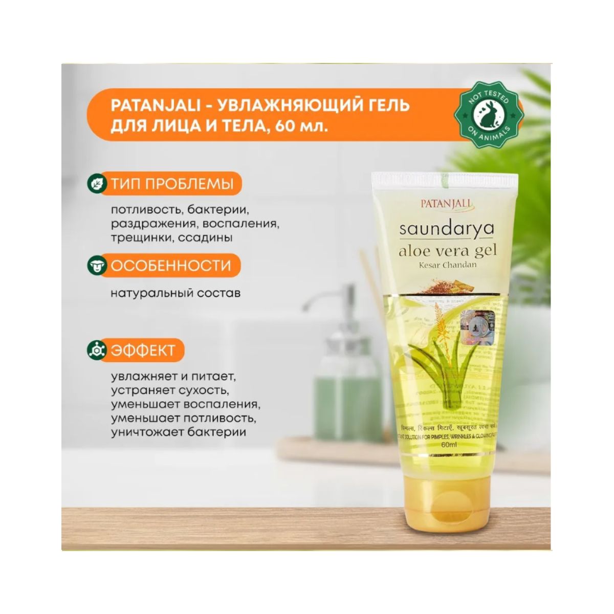 Patanjali Saundarya Aloe Vera Gel Kesar Chandan — это гель, который содержит натуральные ингредиенты и предназначен для ухода за кожей. Он обладает рядом преимуществ, которые делают его популярным средством для ухода за лицом и телом.