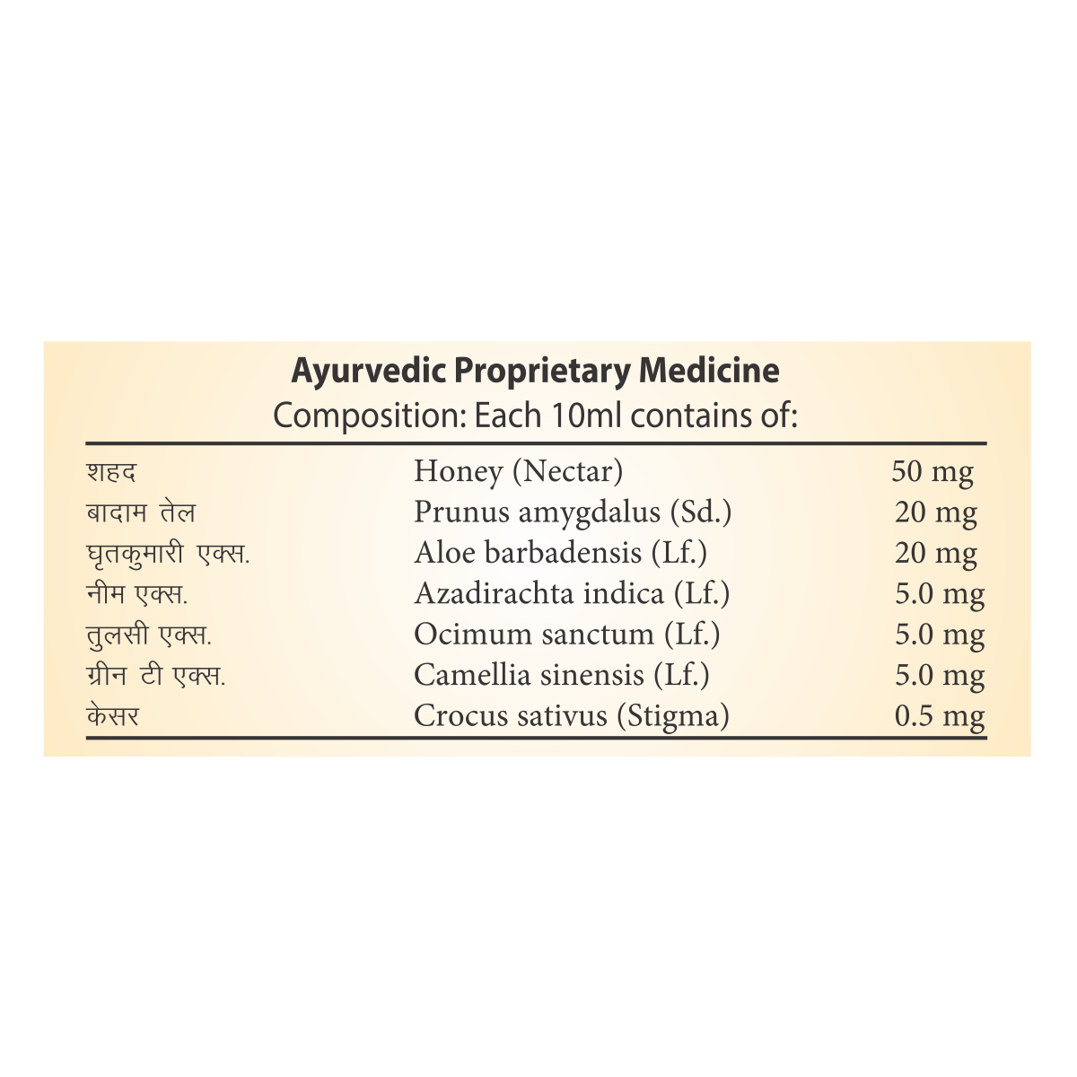 В состав средства входят такие ингредиенты, как ним, туласи, алоэ вера, мед, кесар, зеленый чай и миндальное масло. Оно легко удаляет загрязнения и грязь, сохраняя при этом естественный баланс влажности кожи.